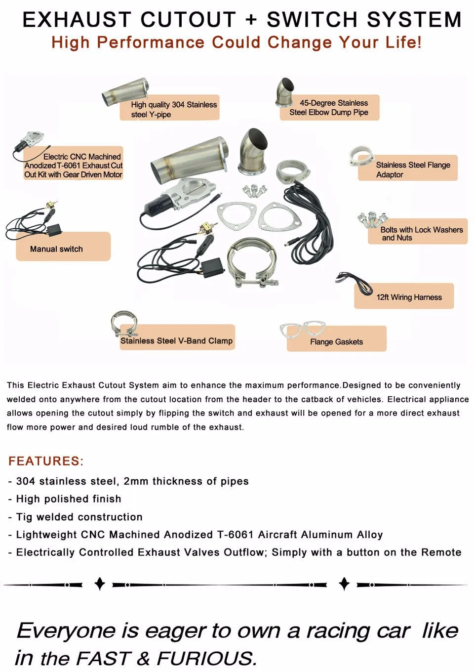 Product Name | 51mm System Remote Exhaust Catback Downpipe Cutout |