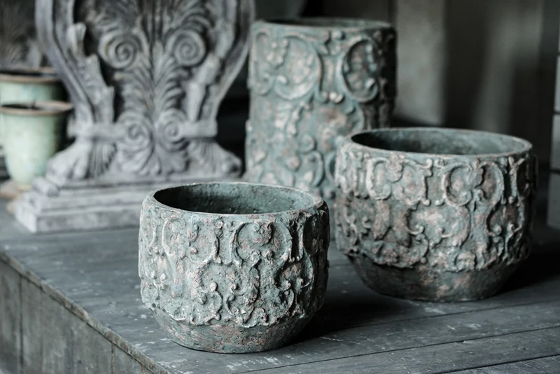 Fiber cement material garden decor flower pots wholesale shabby chic white plant pot