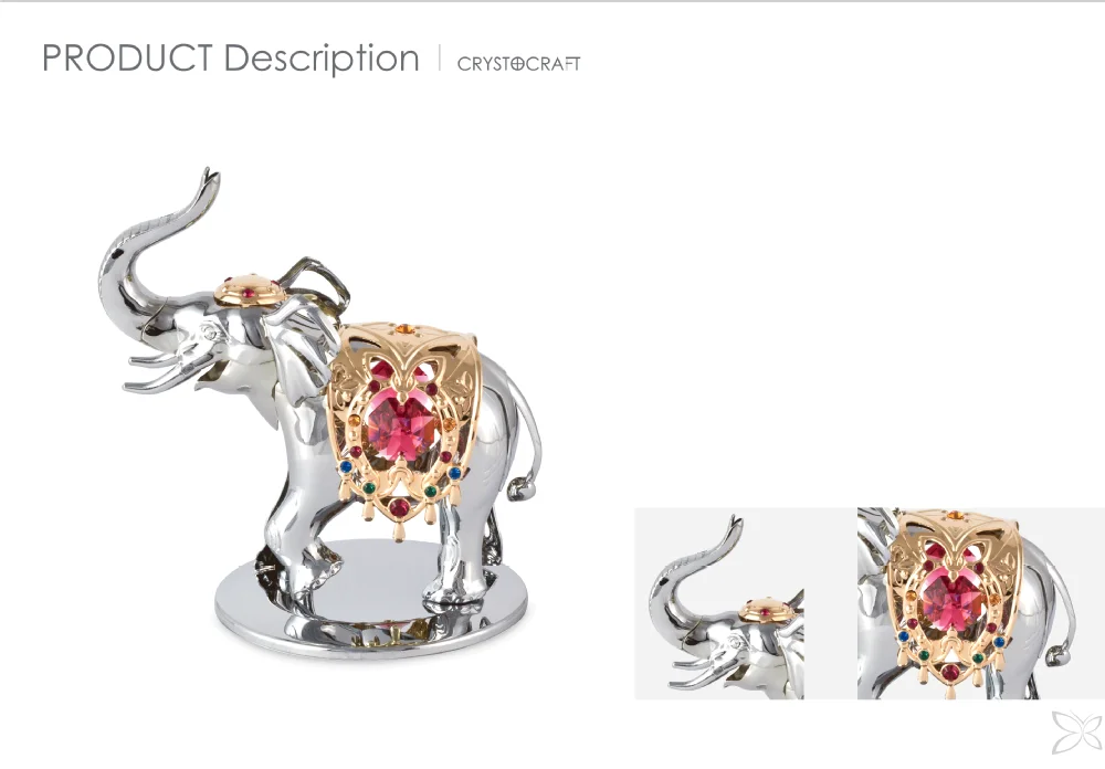Product Name : | Deluxe 3D Chrome Plated Metal Elephant Figurines Decorated with Brilliant Cut Crystals | |