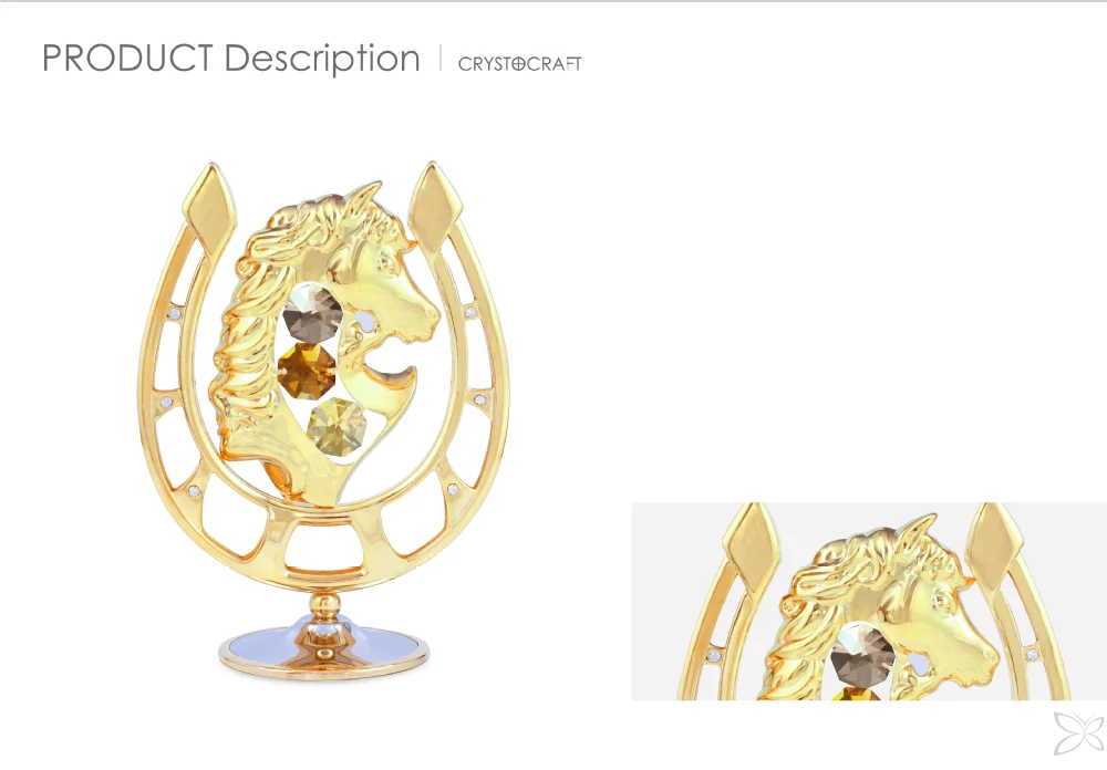 Product Name : | Gold Plated Metal Business gift Decorated with Brilliant Cut Crystals Horse with Horseshoe | |