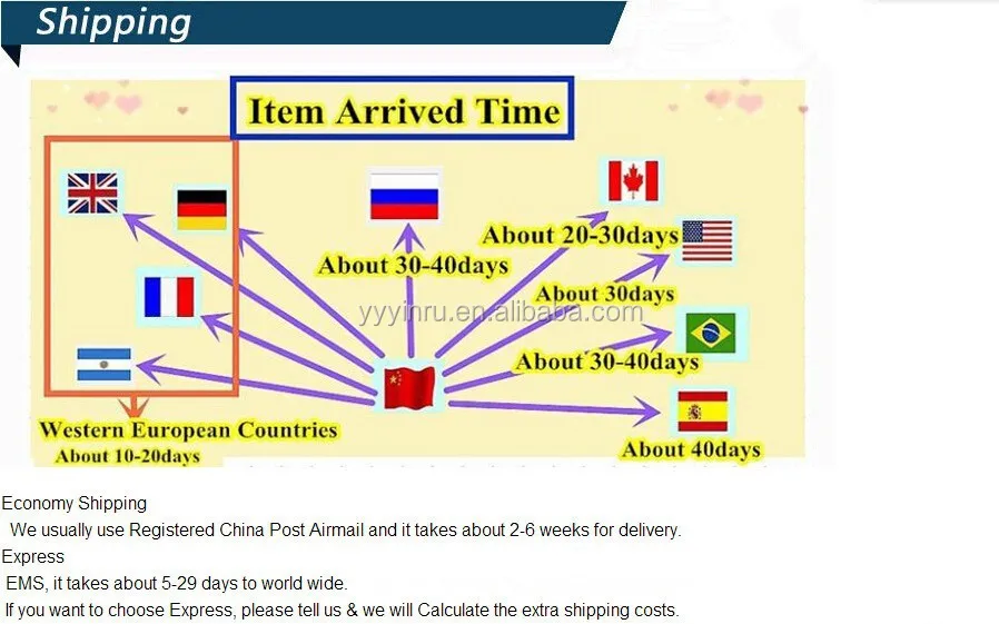 A: We usually ship by DHL, UPS, FedEx or TNT. It usually takes 3-5 days to arrive. Airline and sea shipping also optional.