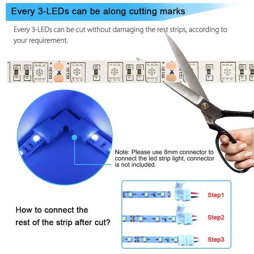 EASY INSTALLATION: DC12v, Cutable each 3LED