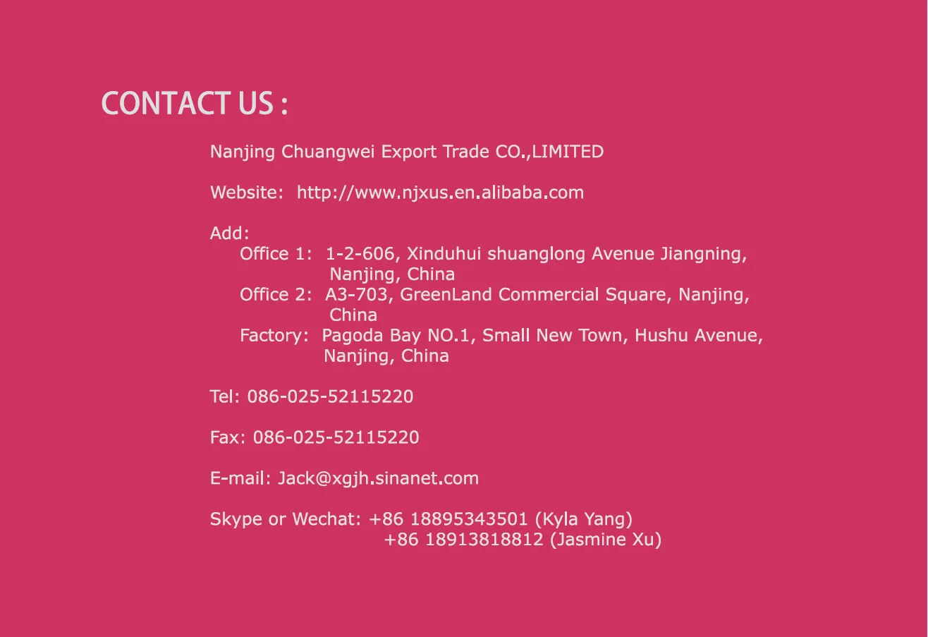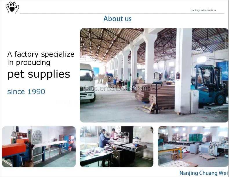 Nanjing ChuangWei Export Trade Co., Ltd. is both a trading and manufacturing company.We started our business on pet supplies since 1990. In 2008 we begin exported our pet supplies abroad. During the last 11 years, we have cooperated with customers from north America, Europe, south-east Asian and Australia and set up long lasting commercial relationship with them.