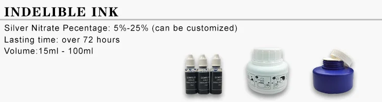 Indelible ink is also called silver nitrate ink, since it can't be washed by water, it mostly to be used for voting and election,the content of the silver nitrate could be 5%,10%,15%,25%.......It can be according to your require, and the more content of silver nitrate contain, the better effect it will be. *Material :Silver nitrate, ink *Usage: Election *Volume:15ml - 100ml *Concentration: 5%-25% (can be customized) *Delivery details:15-25days