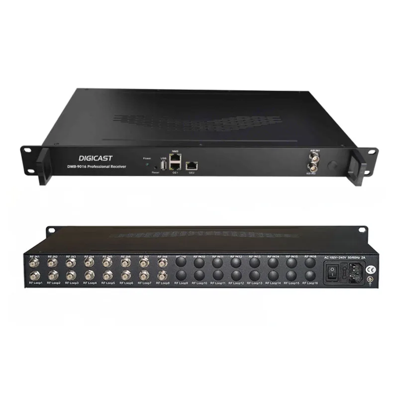 DMB-9016B 16 Channel professional Receiver works with TS over IP technology. De-modulate the Tuner signals to DVB-ASI signals, encapsulating TS over IP signals for transmission via Internet. Meanwhile capable of multiplexing, BISS descrambling, DisEqc. This Multi-Channel Professional Receiver accept 16*Tuners (DVB-S/S2/T/T2/C/ISDB-T optional) input, DE-modulate to 2*ASI(independent) output and encapsulate to IP packet. It supports 16 MPTS or 512 SPTS output over UDP and RTP/RTSP protocol through different IP address and ports.