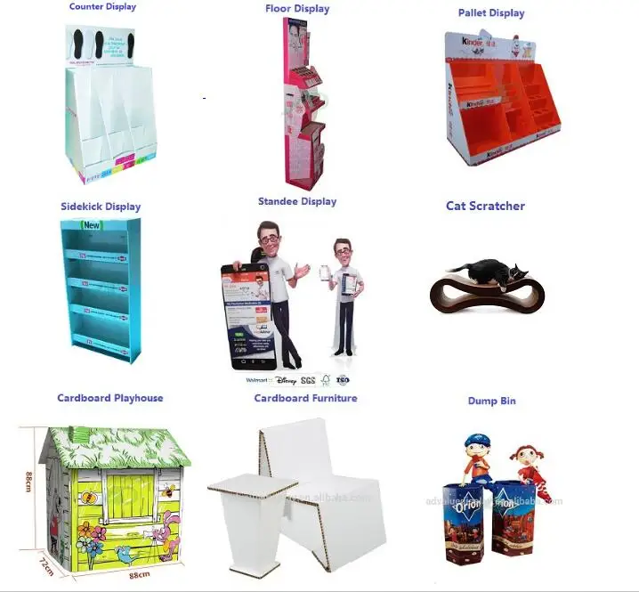 A: Our dispaly are made of recycled cardboard. It's very sturdy, foldable and light duty. It can help you promote your goods, make your goods more attractive. Pos Advertising in market , help u improving the selling , and be a hot sales .