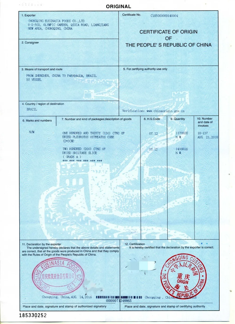 MOQ | 1.Fresh:50kg. 2.Dried:0-10kg by express, 100kg above by airplane. 3.Frozen: 100kg above 4.Brined: At least one 20 container | ||||