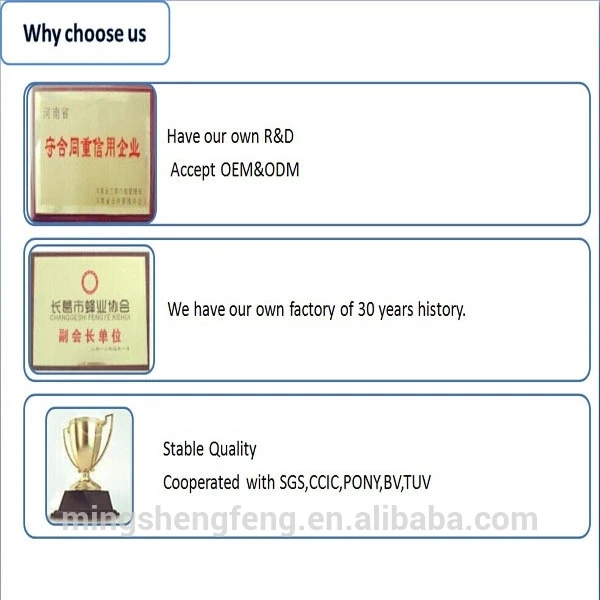 1.We are professional bee products manufacture. The quality service and experience in bee products are highly approved by our clients. 2.We have an experienced and creative notebook team. Your any demands on designs can be satisfied. 3.We have factories to well meet the delivery requirements. Delivery is on time and quality is well under control.
