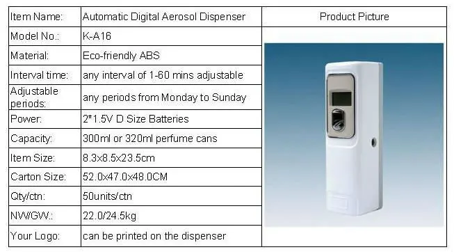 Pure Air Freshener Spray Machine LCD Perfume Fragrance Paint Aerosol Dispenser |