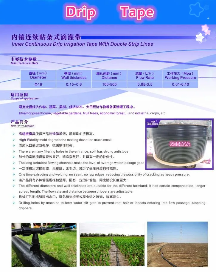 Drip tape - inner inlay drip irrigation belt with continous flat dripper