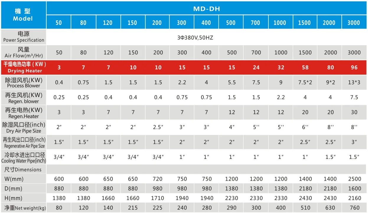 At least 6 years' service life for the desiccant wheel, it can be clean as soon as poor drying efficiency.