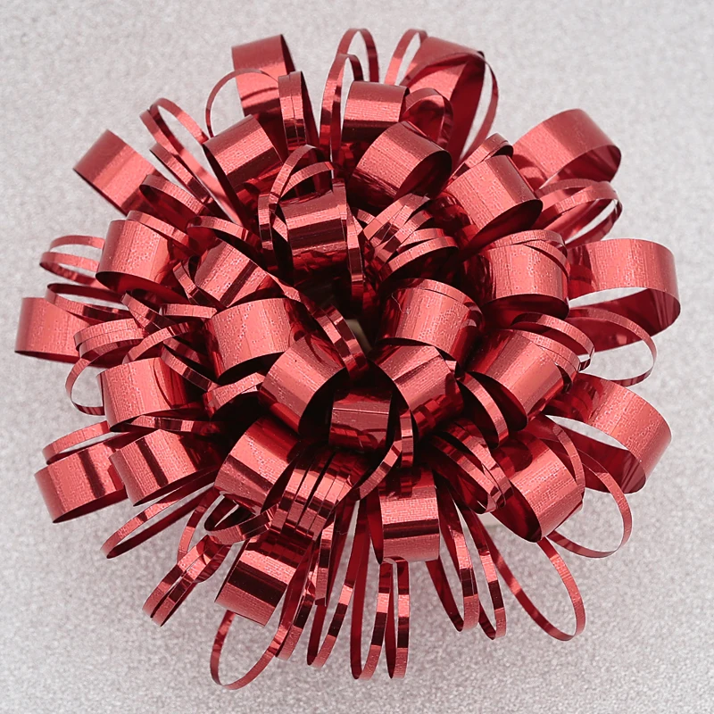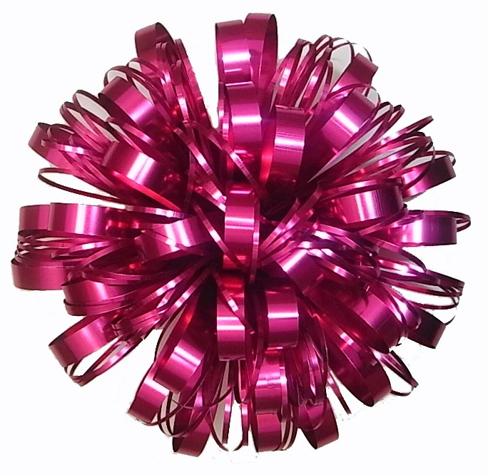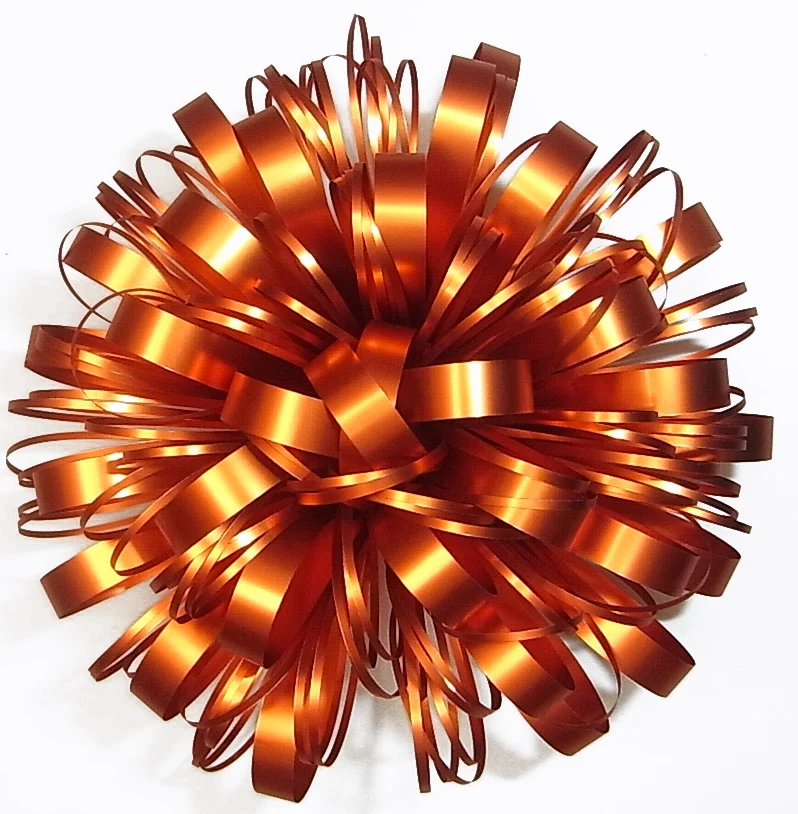 We devote ourselves to produce high quality pp ribbon that are widely used in gift wrapping and decoration. We own complete set of pp ribbon making equipment such as extruding, printing, laminating, slitting, rewinding and embossing machines etc., can provide pp ribbon in solid plain, metallic, glossy, holographic, iridescent, plated, printed etc. for all users home or abroad, daily extruding output is 75,000 square meters. Integrating bow machines and handwork, we can make spooled ribbon, ribbon egg, star bow, curly bow, pom-pom bow, butterfly pull bow, fountain bow, gift wrapping film, Easter grass, pre-tied bows etc.