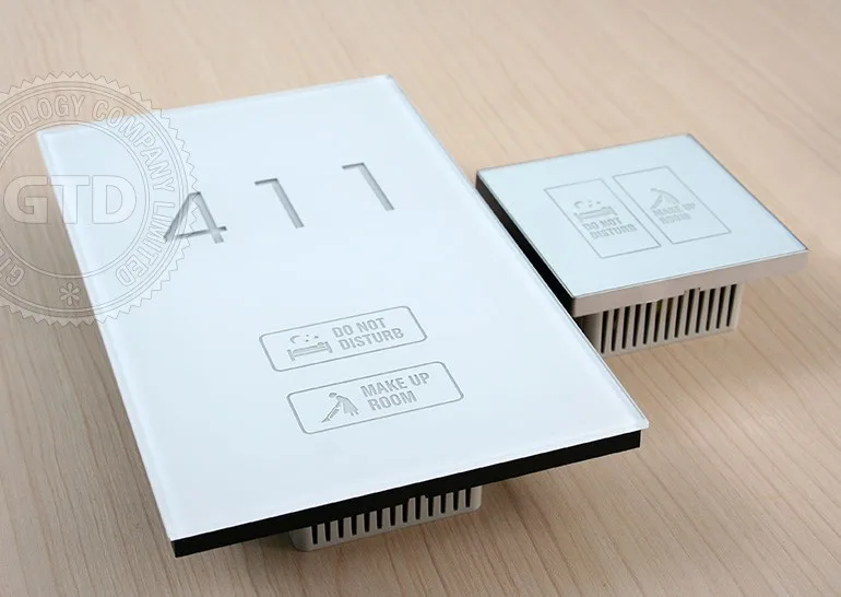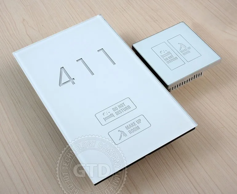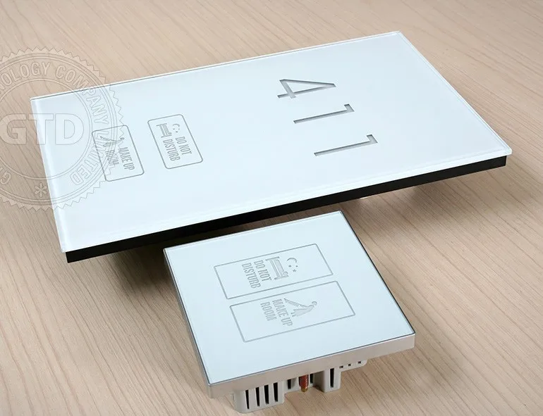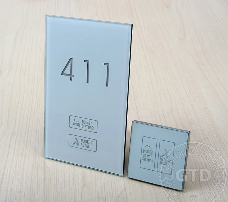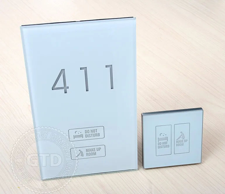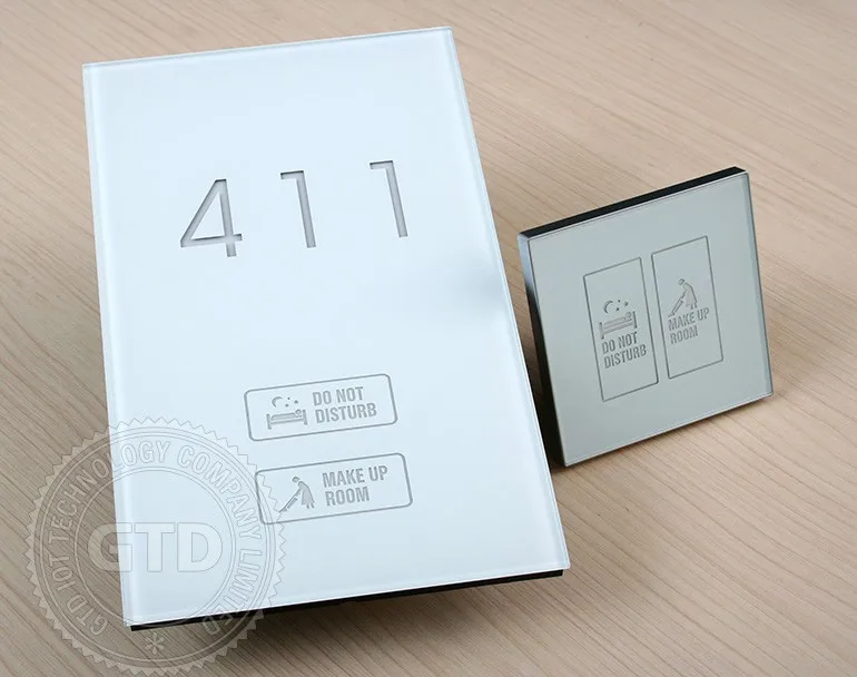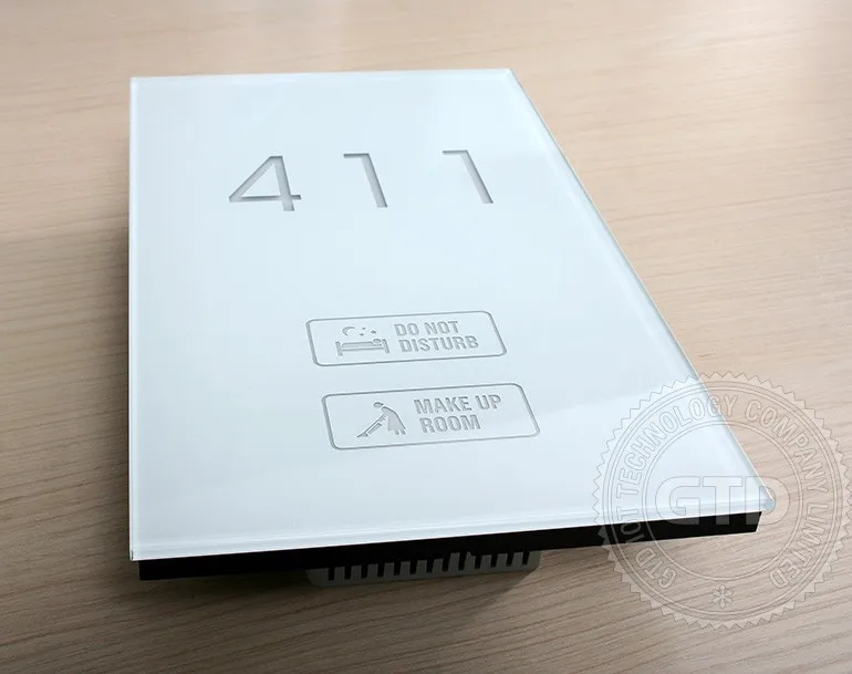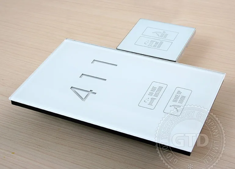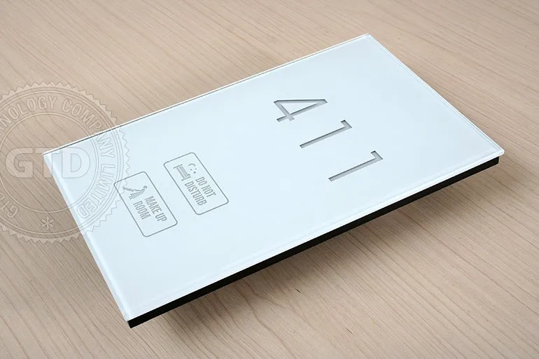 Crystal white tempered glass panel touch electric doorplate with room number