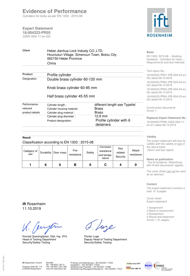 Brass profile cylinder has been verified according to EN1303