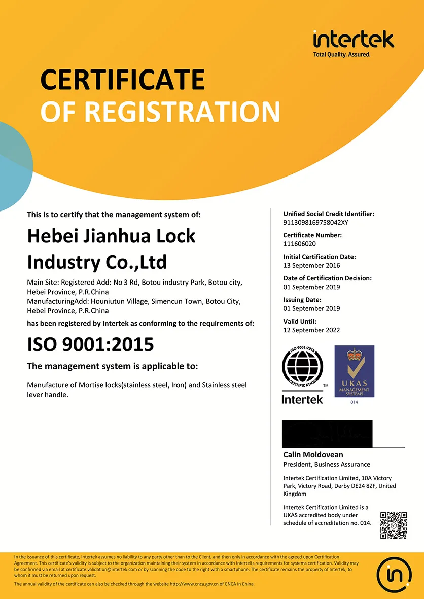 JIANHUA Group has 900 workers which covers 133,000 square meters (33 acres), specialize in Architectural hardware for doors (Rim lock / Mortise lock / Lever handle / Profile cylinder / Hinge).