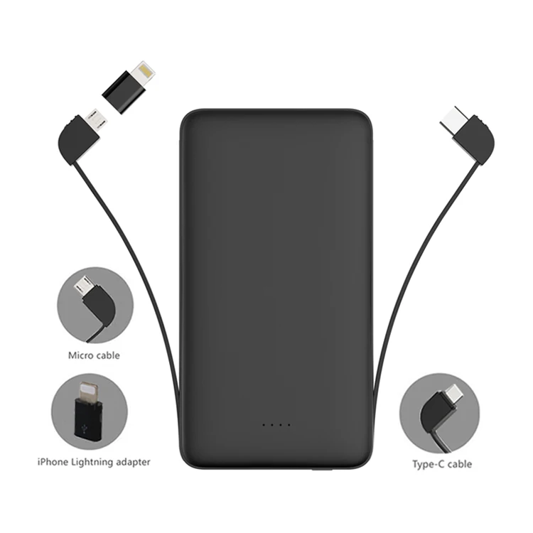 **Built-in micro charging cable and iPhone adapter for both Android cellphones and iPhones