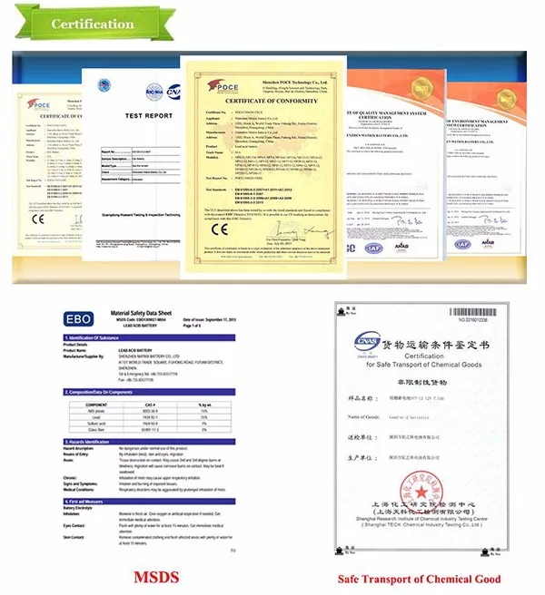 4.Material : high quality lead, spongy lead, AGM separator , pure sulphuric acid.
