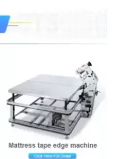 Main application and performance: This machine is mainly for mattress tape edging, it is of more automatization than our others. It is characterized with adjustable elevation, work height on sewing head, as well as sewing speed. It adopts movable work table, PLC controlling, artificial intelligence,operation,auto moving, auto corner turning and upturning, work efficiency highly increased. Sewing hesd is able to auto up and down, slow down and repostion at mattress corner, avoiding 4 corners inner warp. Mattress 4 edges can be taped continuously, both upturning and previous position are qutomatic, while oly one operator request. With this machine, efficiency is highly increased while labour intensity greatly reduced. |