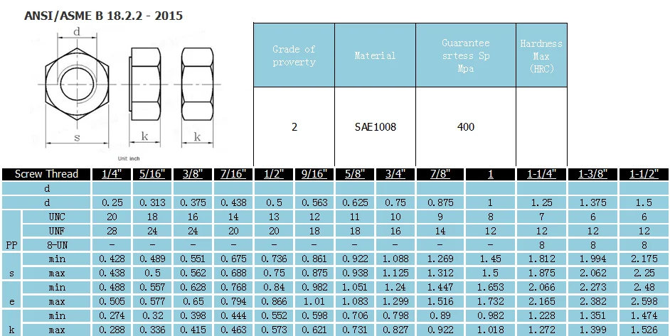 Standard | Ansi b18.2.2 hex nut |