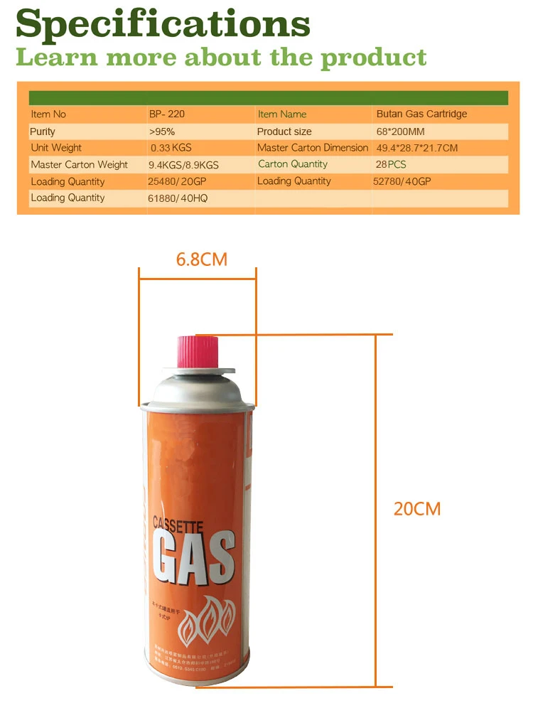 Refill 190g butane gas cartridge for gas stove
