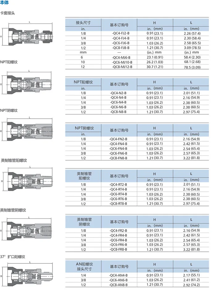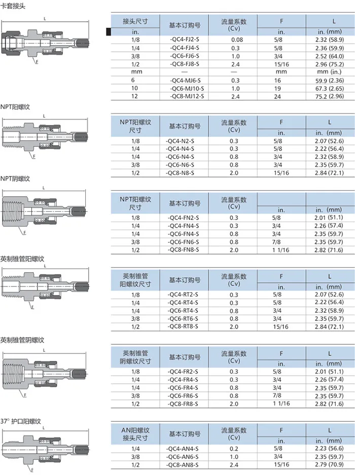 Material: stainless steel, carbon steel and brass