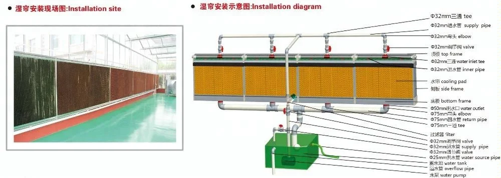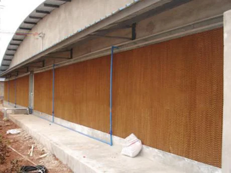 4.Strict production as per standard,width of 600mm cooling pad involves 85 sheets,raw material adopts imported kraft paper(100g/㎡,thickness:0.18-0.20 mm,tension resistance at 70N,absorbability height as 45mm/10min,moisture at 5%-8%,humidity at 18N)