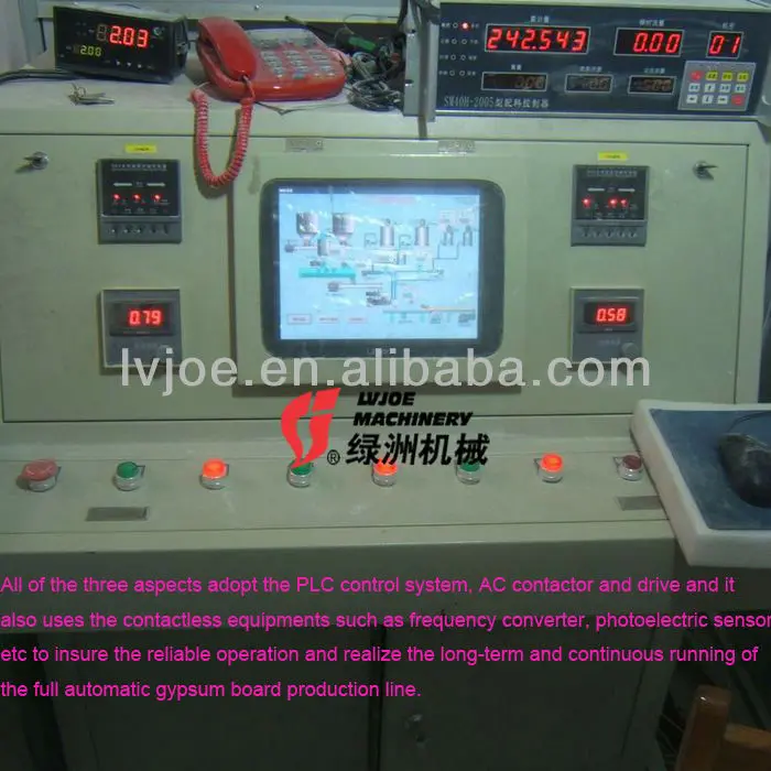 1. Brief introduction of gypsum production machine adopts advanced technology. We adopts the horizontal flow, vertical airflow heat exchanger heating system, the raw material feeding system and edge cutting and edge sealing and edge grinding and recycling system and stacking system are all controlled by computer. All the whole line is full automation.