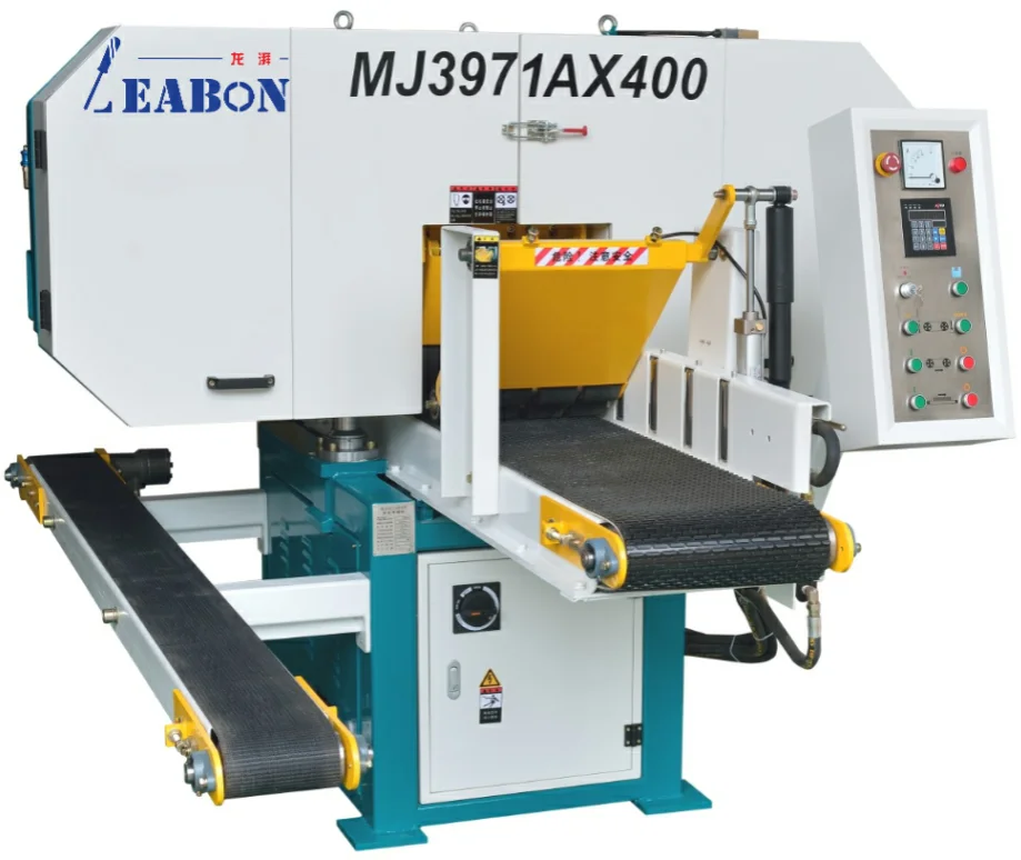 Wood cutting band saw LJ3971*400 with return back conveyor system.
