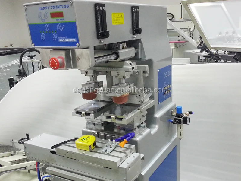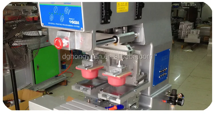 Features: 1.SCM IC complile action program,kinds of printing model options 2.Auto 4-digit counter built-in,and stat. Printing quantity 3.Airframe adopts coin alloy,and metal coating surface 4.Worktable,plastic head and ink tray can be adjusted X.Y.Z direction 5.Sucking ink and the pressure of printing pad can be adjusted independently . 6.The distance of scratching ink is adjustable 7.leveling ink by sliding automatically on front /back,this can avoid printing ink partial solidification 8.The speed of all the cylinders have an independent regulator intortum 9.Adopts original Japan SMC and Taiwan MINDMAN pneumatic component 10.Each adjustable location has scale logo 11.Unique machine body hold-up design,conveniently adjust machine and change steel plate 12.when there is no pressure air into ,it has prohibition of plastic head Down function 13..The machine is running fastly,it is steady and low voice 14.it can be instead of single color double-head pad printer when shuttle table is not running