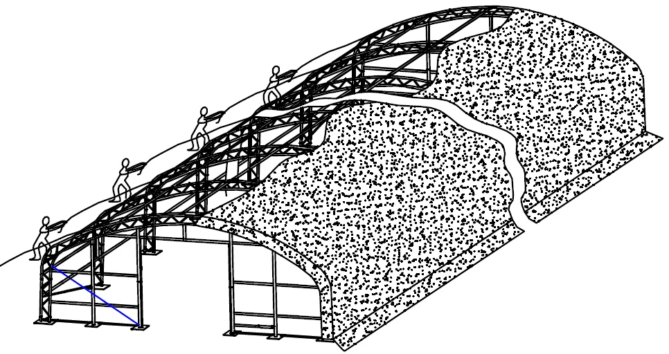 double row tube structure for large span