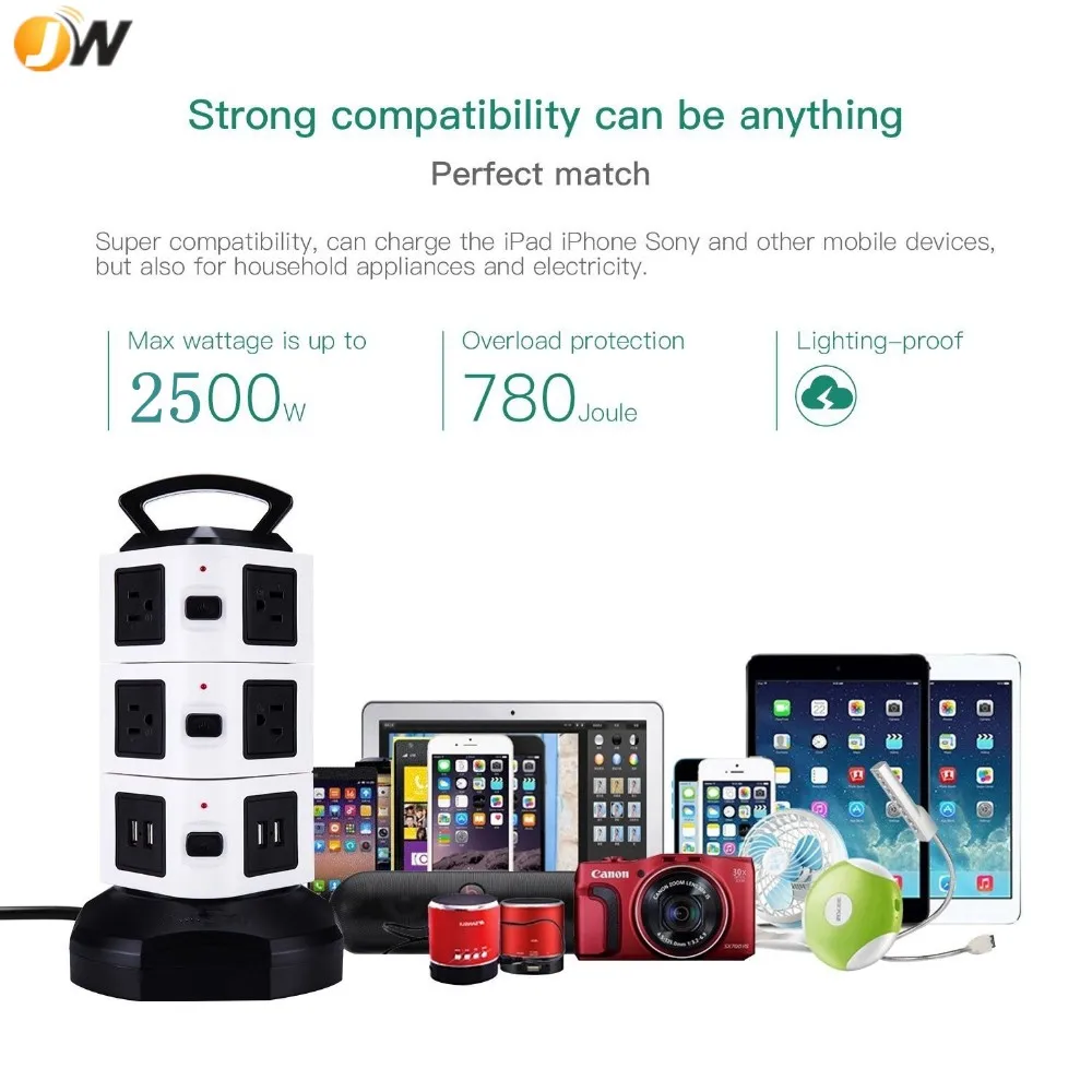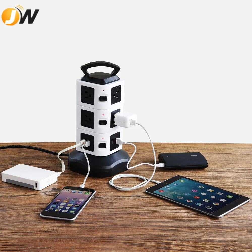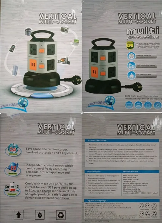 *SMART USB PORT: Intelligent USB charging interface, intelligent USB output 5V/2.1A, 4 intelligent USB interface can charge at the same time, apply to cellphone, MP3, digital camera, tablet. This vertical space outlets and ports are distributed vertically in the four sides of the power strip, providing enough space between each outlet that saves space and eliminate the risk of electric shock hazard.