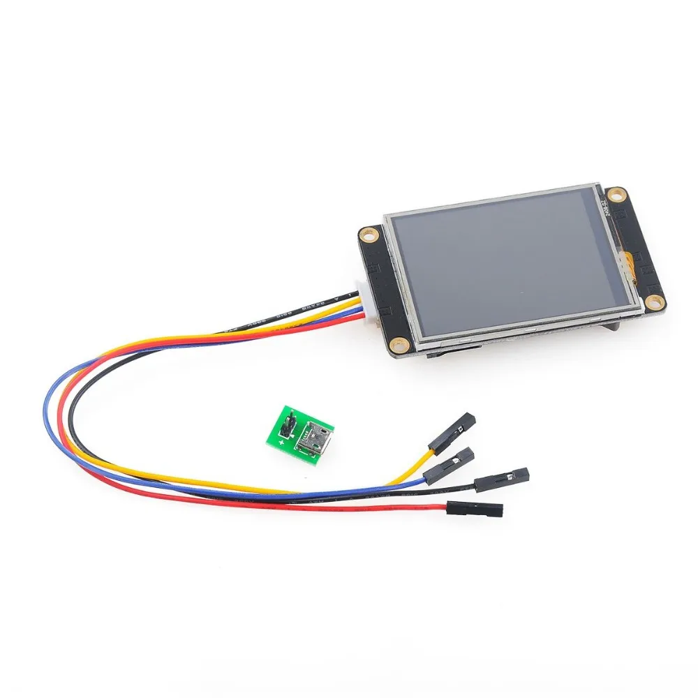 Nextion NX8048K032 Touch Display Enhanced Versions 2.4 Inch HMI LCD Description: Display Resolution:480 * 240 Display Interface:Serial Display Controller:No TFT display interface:N/A Display Size:2.4" Board Size: 95mm*47.6mm Expand: SD Card Socket , Touch Screen Support built-in RTC . Support GPIO SD Card interface: support max max 32G Micro TF/SD card (FAT32 file format) Flash data storage space: 16MB EEPROM: 1024 byte RAM: 3584 byte Instruction buffer: 1024 byte Color:65K (65536) colors Resolution:320×240 pixel Adjustable Brightness:0~180 nit, the interval of adjustment is 1% Visual Area:69.60mm(L)×41.76mm(W) Layout size:95(L)×47.6(W)×5.55(H) Touch type: Resistive Backlight:LED Backlight lifetime (Average): >30,000 Hours Recommended power supply: 5V 500mA DC Nextion is a Seamless Human Machine Interface (HMI) solution that provides a control and visualisation interface between a human and a process, machine, application or appliance. We notice that most engineers spend much time in application development but get unsatisfactory results. In this situation, Nextion editor has mass components such as button, text, progress bar, slider, instrument panel etc. to enrich your interface design. And the drag-and-drop function ensures that you spend less time in programming, which will reduce 99% of your development workloads. Note: there's a small power supply test board and a wire for you to test if the electricity supply is enough or not. Please see below image how to use it. Package Including 1 * 2.4" Nextion Enhanced HMI Display 1 * power supply test board 1 * 4-pin grove cable |