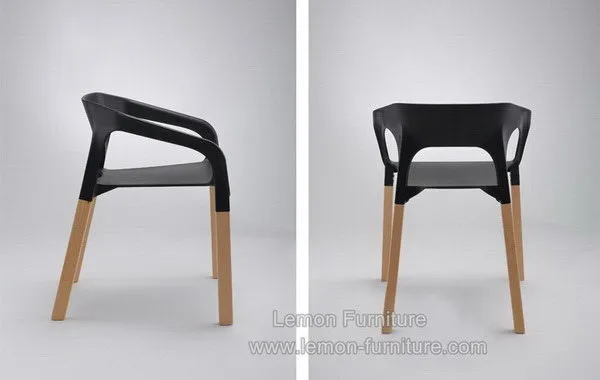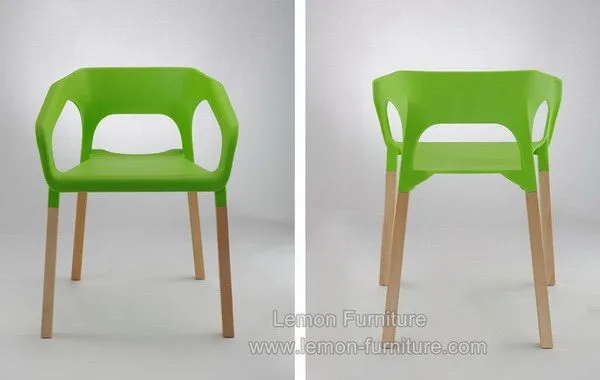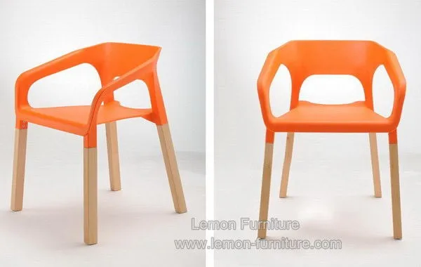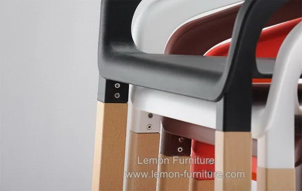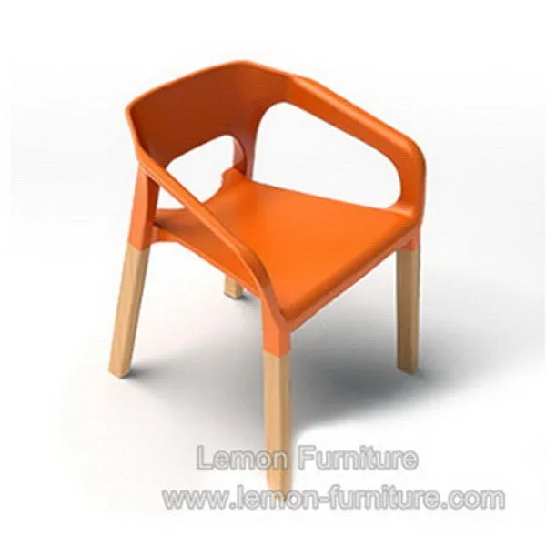 Modern wholesale armrest wood leg stackable restaurant plastic chair