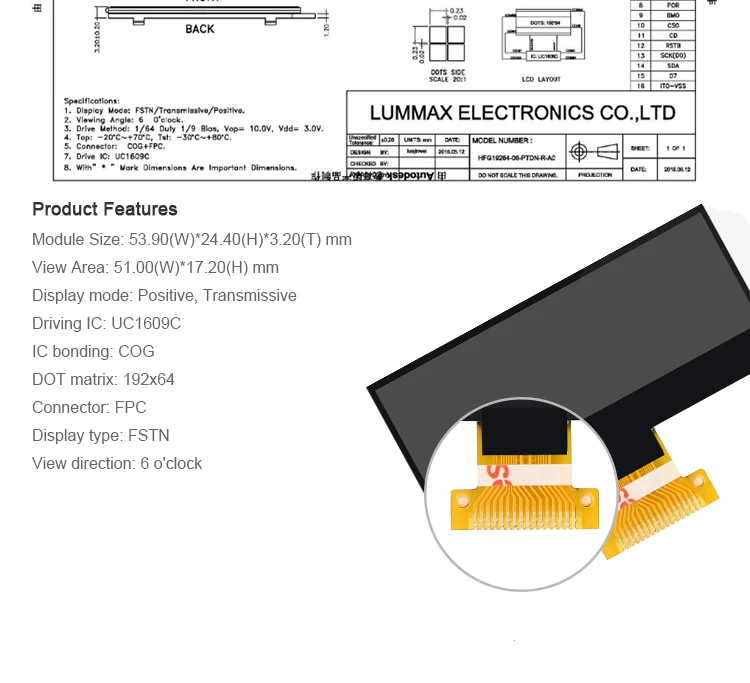 Product description for 2 inch Monochrome Graphic LCD Display 192x64