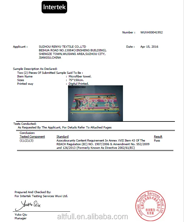 10.Certification available: | Yes | |||||||