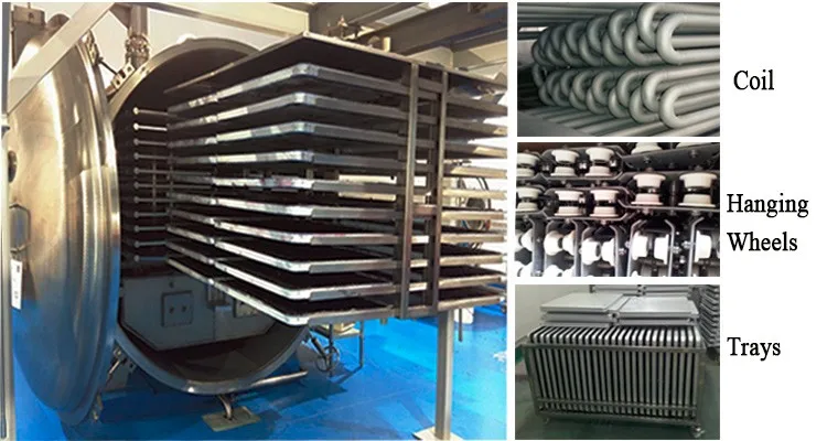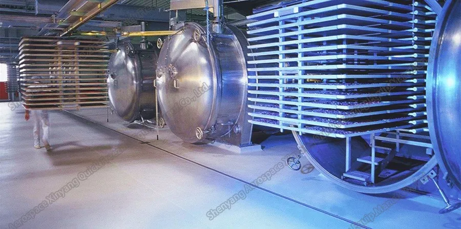 Vacuum freeze drying technology is the most advanced technology for food dehydration processing at present. Compared with the common drying method, the freeze-dried food produced with this technology features long period of quality assurance, good re-hydration nature, good-looking color, good flavor, taste, shape and high content of nutritious components. The dried food basically remains unchanged in its volume and shape, it looks like sponge and has no shrinking. This kind drying technology can be widely used in process of vegetables, fruits, condiments, aquatic products, biological products, medicine, beverage and etc.