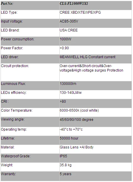 Shiping information for 1000w led flood light