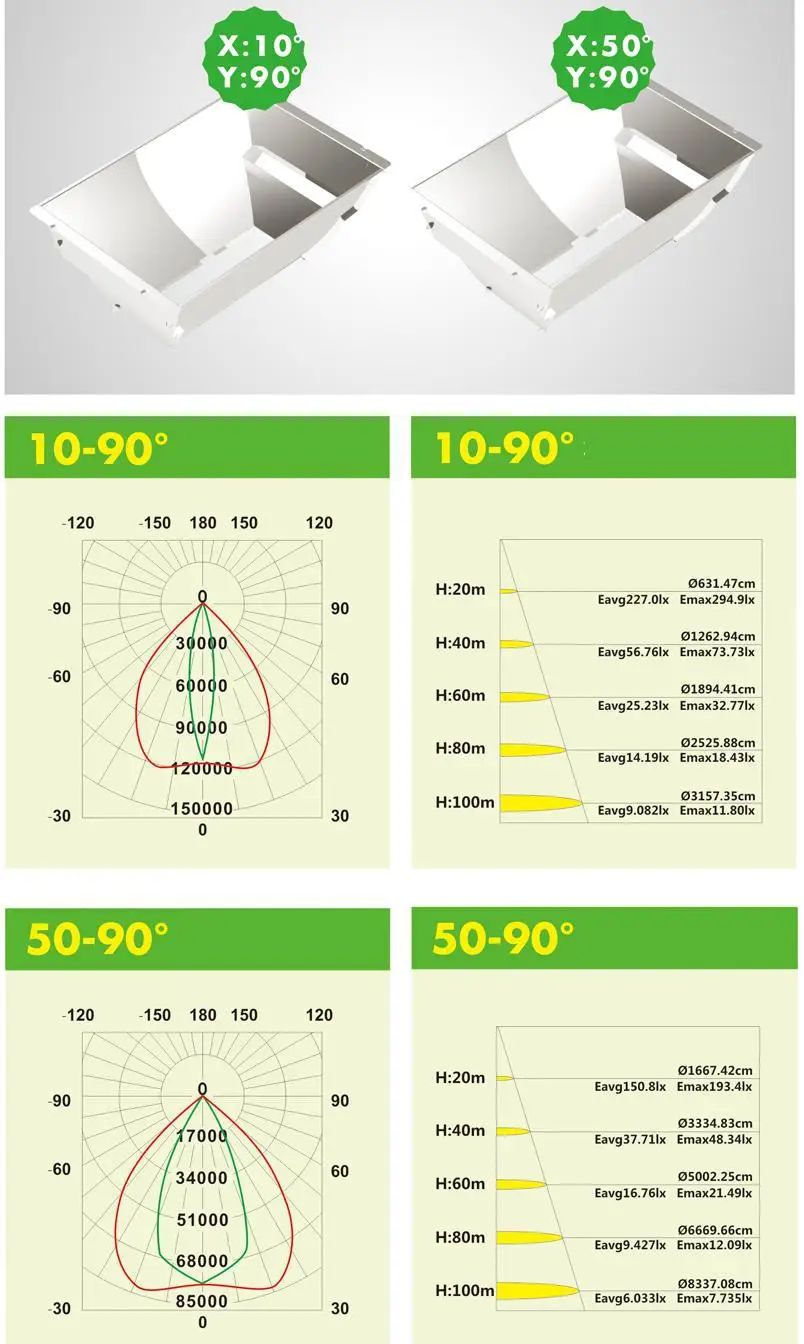Lighting Distribution and Illumination of outdoor led flood lights Waterproof 1000 watts high lumen 100000 lumen LED light:
