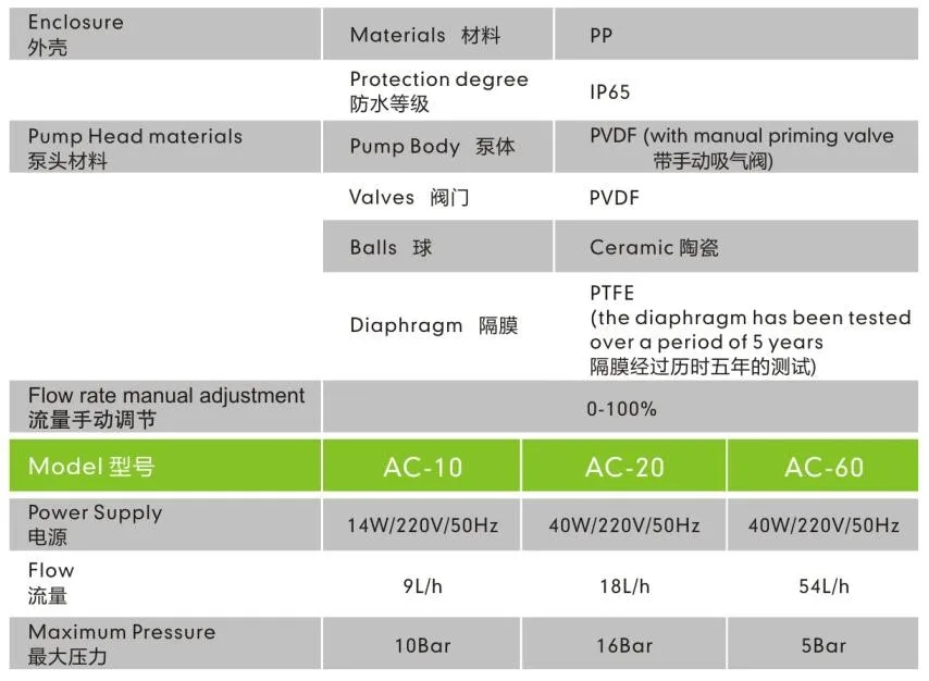 Designed by Italy engineer,AC-10 is a microprocessor controlled solenoid dosing pump, with a simple, stable operation
