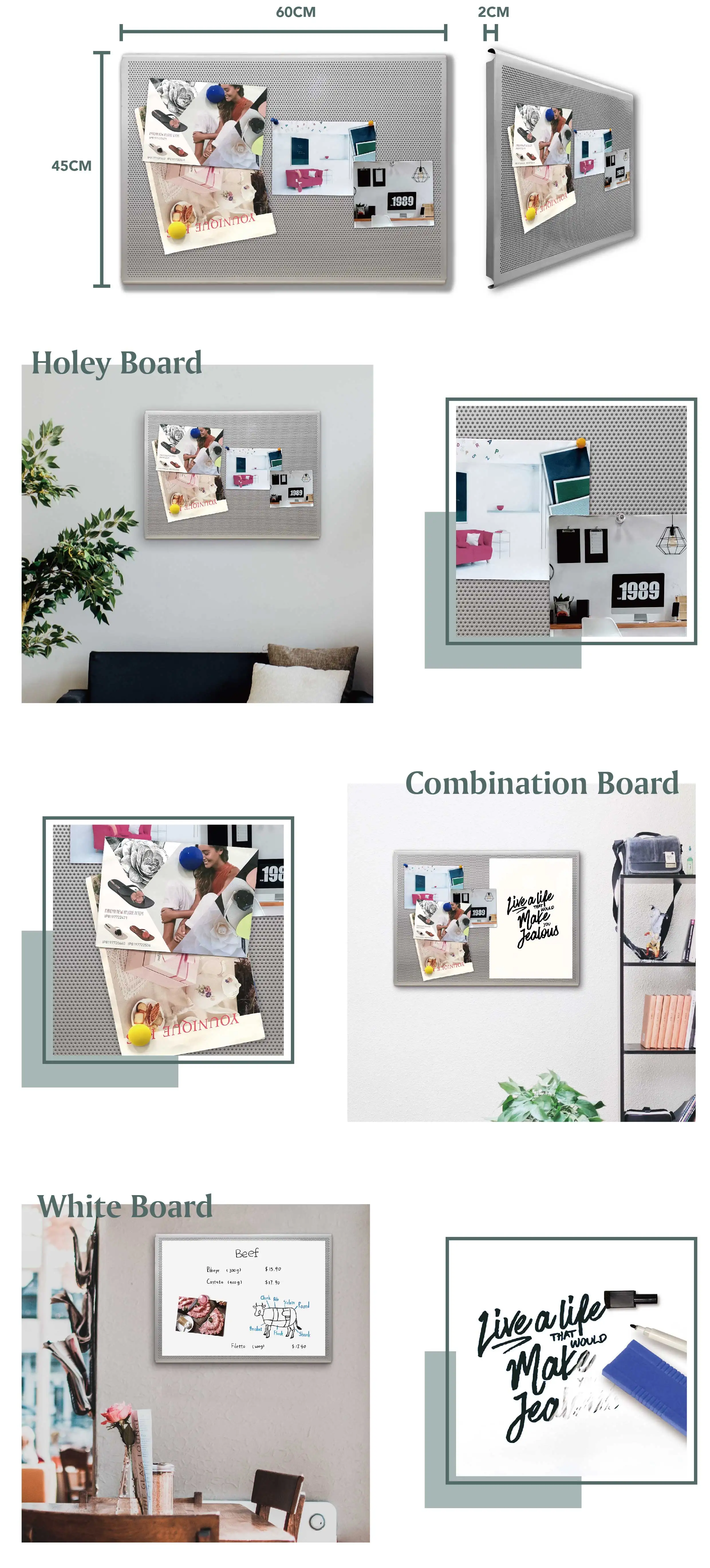 SIZE(CM) | HOLEY BOARD | COMBINATION BOARD | WHITE BOARD |