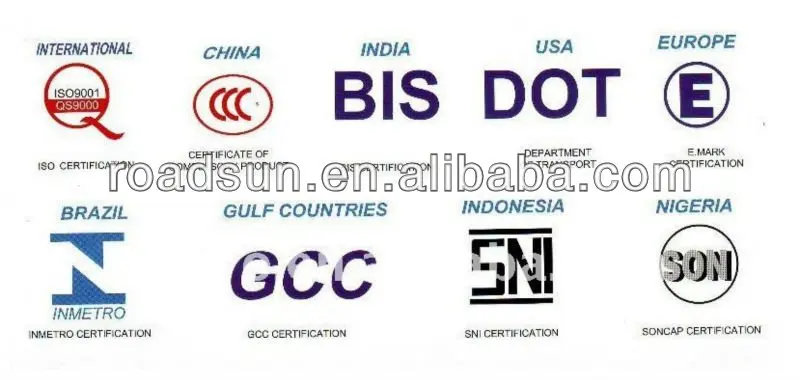lCertificates --- U.S.A. DOT, European ECE & E-Sound, Saudi Arabia GCC, ISO &CCC