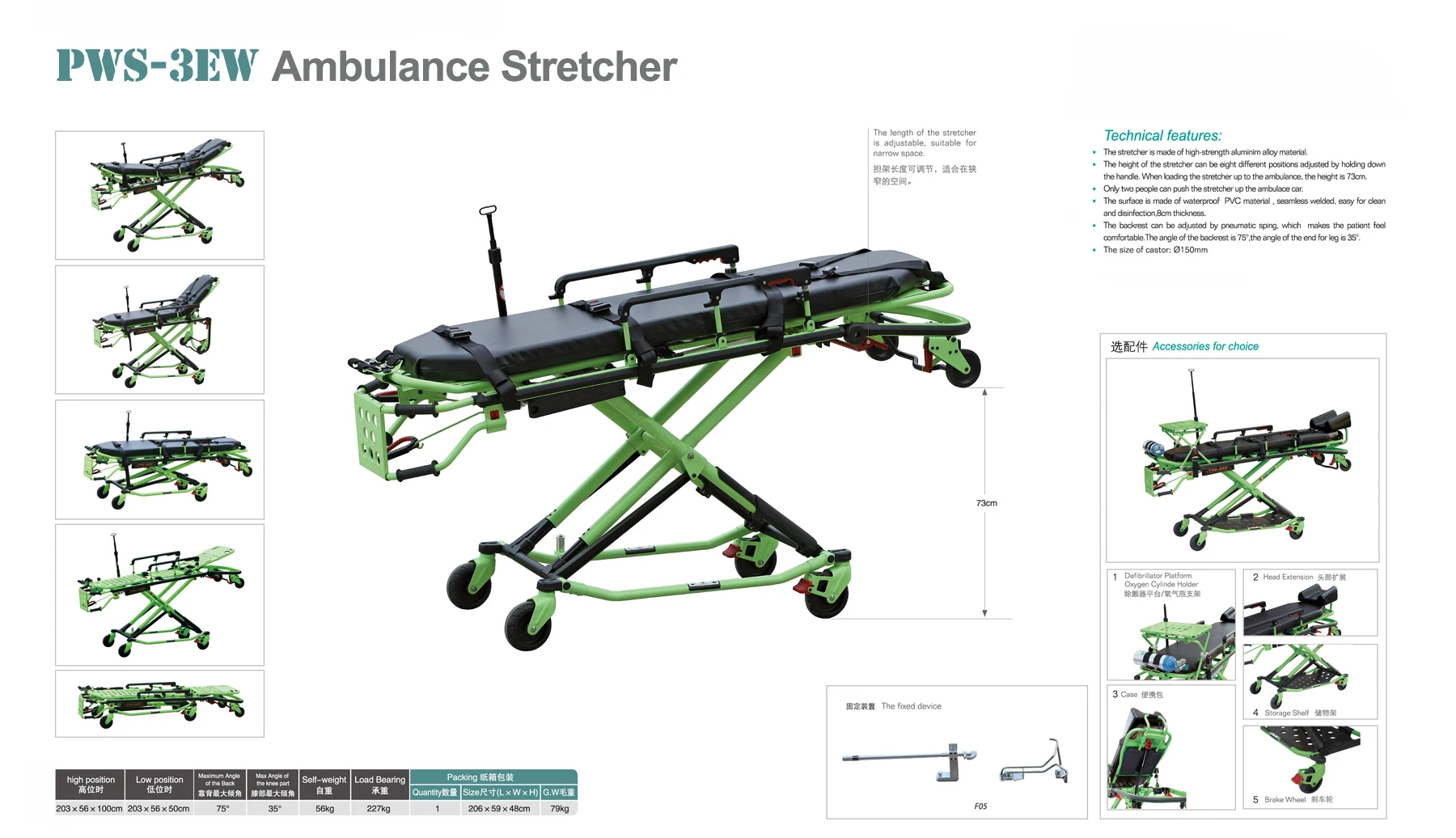 PWS-3EW High Quality Aluminum Alloy Anti Covid-19 Coronavirus Ambulance Stretcher