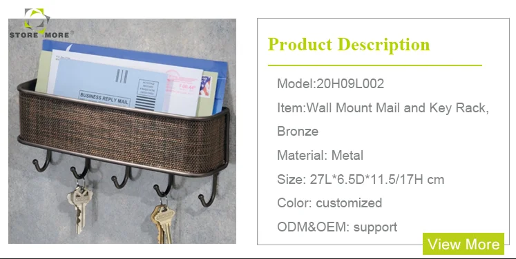 Name | Wall Mount Mail and Key Rack, Bronze |