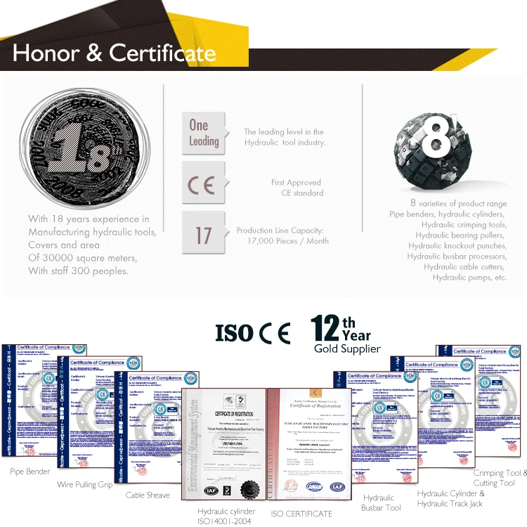 Established in 1997, Yuhuan Huanhu Machinery Electric Tools Factory is a professional manufacturer of high pressure hydraulic tools for various sectors, like electrical maintenance , manufacturing, construction, energy, oil & gas, shipbuilding, railroads, and mining, etc. TLP is committed to providing superior quality hydraulic tools for various industries. At TLP, we have the resource, the capabilities to meet your rigorous requirements. The flexibility of our organization. outstanding know-how in hydraulic tools, rigorous quality assurance system, and strong commitment to customer service, has earned us a reputation of dependability. When you require dependable quality of hydraulic tools at very competitive price, just ask for TLP. We will offer you the best only products.