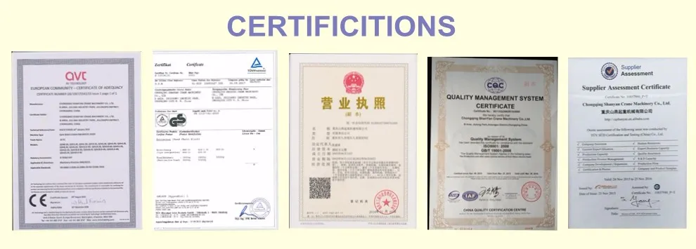 Our company had built the reputation for 20 years ,acquired the SGS ISO 9001,CSA GS and CE certification, Norway DNV CE Mark and many other domestic crane and hoist certifications especially for the eighth Chinese National Foundation Award winning.