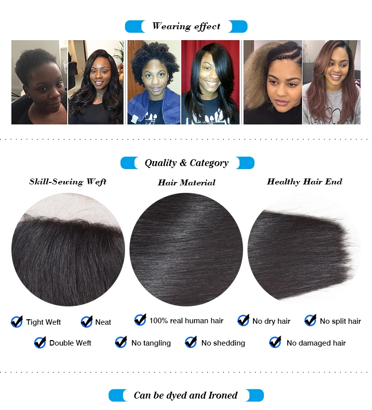 Hair Features | 1,Easy to ironed or restyle . 2,Help you achieve the most natural looking 3, Lace color extrmely the same as your skin. 4,A closure is a very simple and convenient . | |