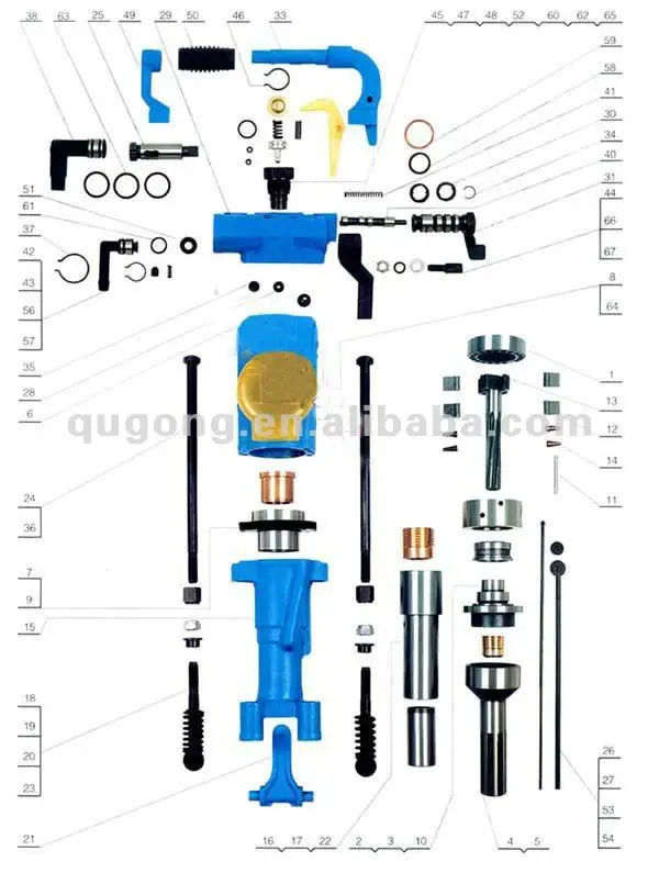 1.This air leg rock drill widely used in coal, metallurgy, railway, transport, water, infrastructure and national defense projects of various levelsof rock, tilt, down the hole drilling operations