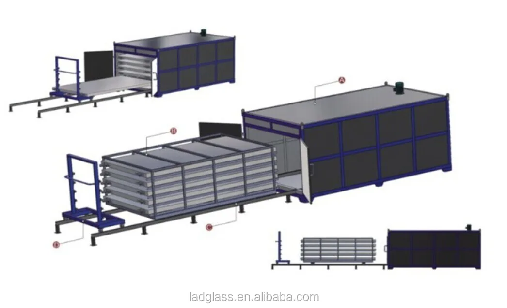 This machine uses vacuum principle, in the vacuum condition heat the laminated material and glass together until the plastic melt, so they can join together. It also can process silk, paper, calligraphy and painting, ultraviolet radiation unilateralism film, light adjusted film and so on with glass to produce all kinds of art glass or decorated glass. This equipment doesn’t include high pressure kettle or hot-press.