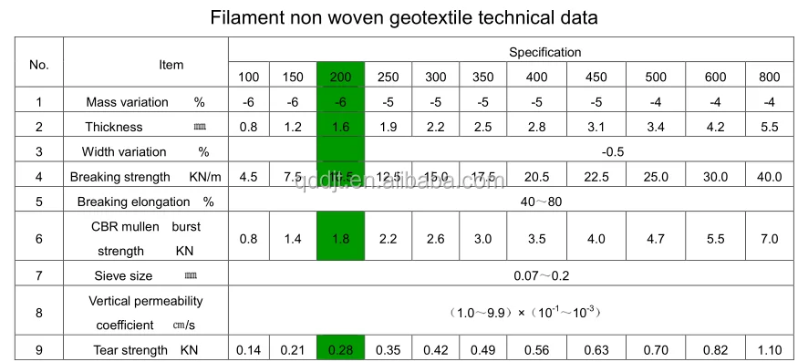 Feartures of long fiber polyester geotextile