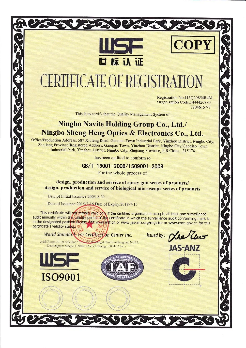 Our company Approved ISO9001:2008 system.